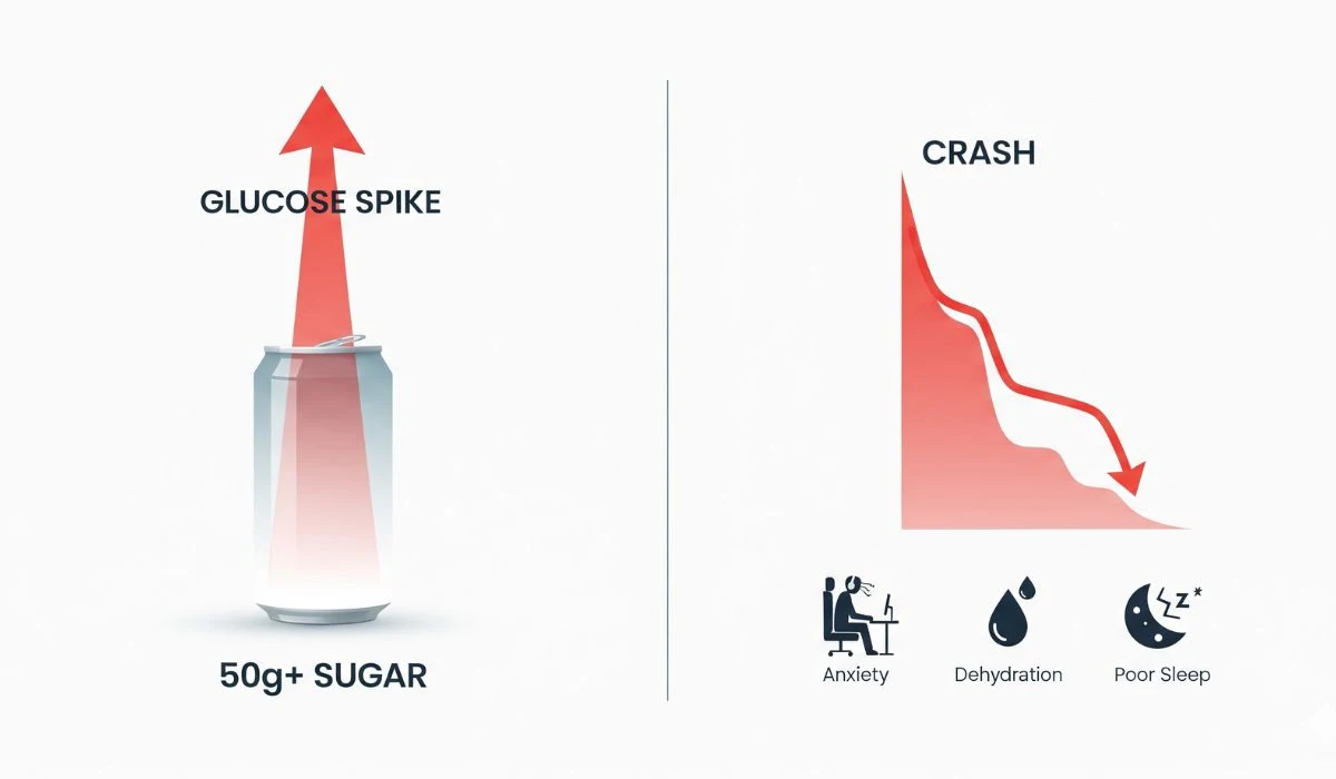 The initial rush you get from a traditional energy drink is a massive glucose spike in your bloodstream. Your body responds by releasing a flood of insulin, causing a rapid overcorrection. This is the physiological process behind the crash.